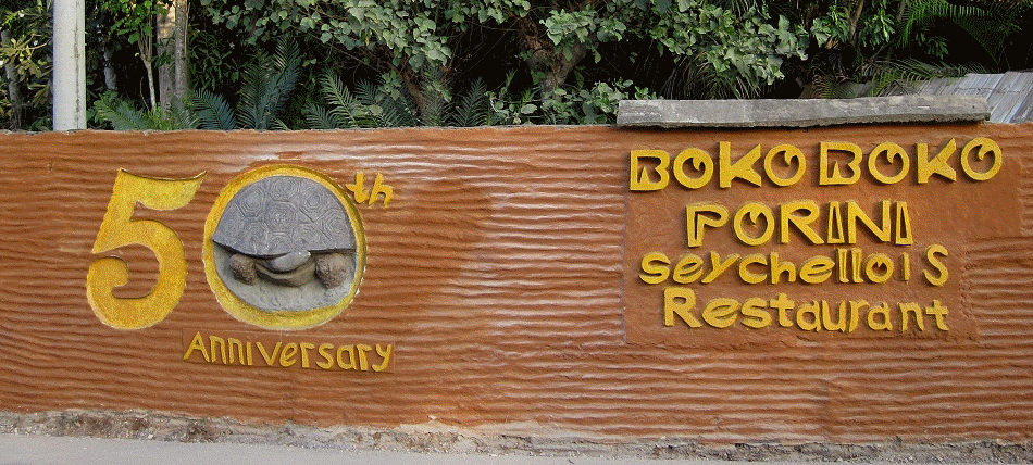 Boko Boko - Porini Seychelloise Restaurant She has carried the tradition from her late mother by creating a warm and friendly atmosphere, charming sevice and wholesome tasty food. Meals are served in clay pots and traditional wooden dishes; often eaten the traditional way, with hands! Boko Boko - Porini Seychelloise Restaurant is surrounded by an tropical garden with more than 50 differnt Trees and Palm trees from different countrys around the world! In this privaze Djungle you can find Aldabra Giant tortoice, American Terrapins, as well locale birds and butterflys. Slow, relaxed "home-tyle" service. Ideal for travellers who enjoy fresh, made to order meals. The cutom of offering clay bowls of warm lime-water for washing hands before and after meals is one of the details which will add to memorable ecperience. It is this eye for the detail that makes "Porini" such a special attraction and treat. The attentive waitresses are very helpful when it comes to ordering from the extensive menu.